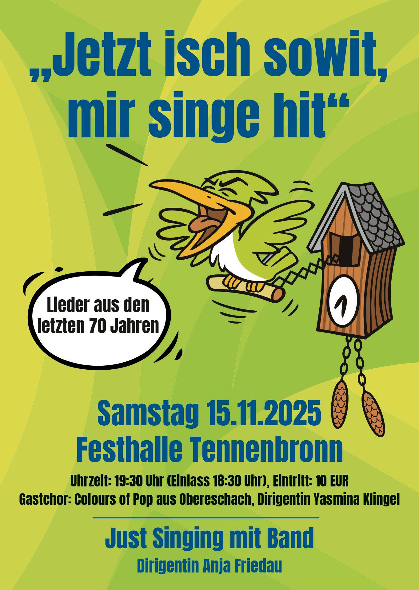 „Jetzt isch Zit, mir singe hit“. War das Jahreskonzertmotto von Just Singing mit dem Gastchor Colours of Pop am 15. November 2025.